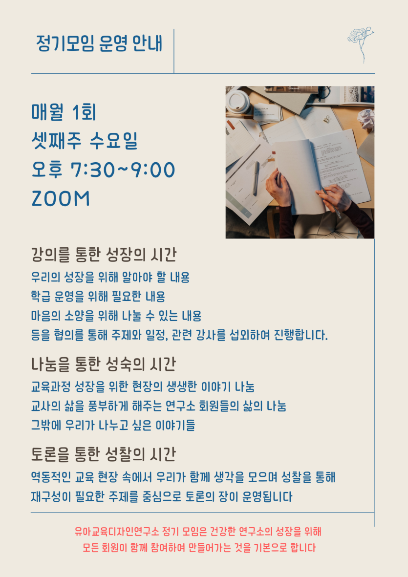 정기 모임 운영 어떻게 되나요? 페이지 정보 작성자: 강별아 | 작성일: 23-08-28 본문 유아교육디자인연구소 정기 모임 운영 안내입니다^^ 이전글연구소 리플렛 23.08.28 다음글연구소 가입자격 23.08.27 목록